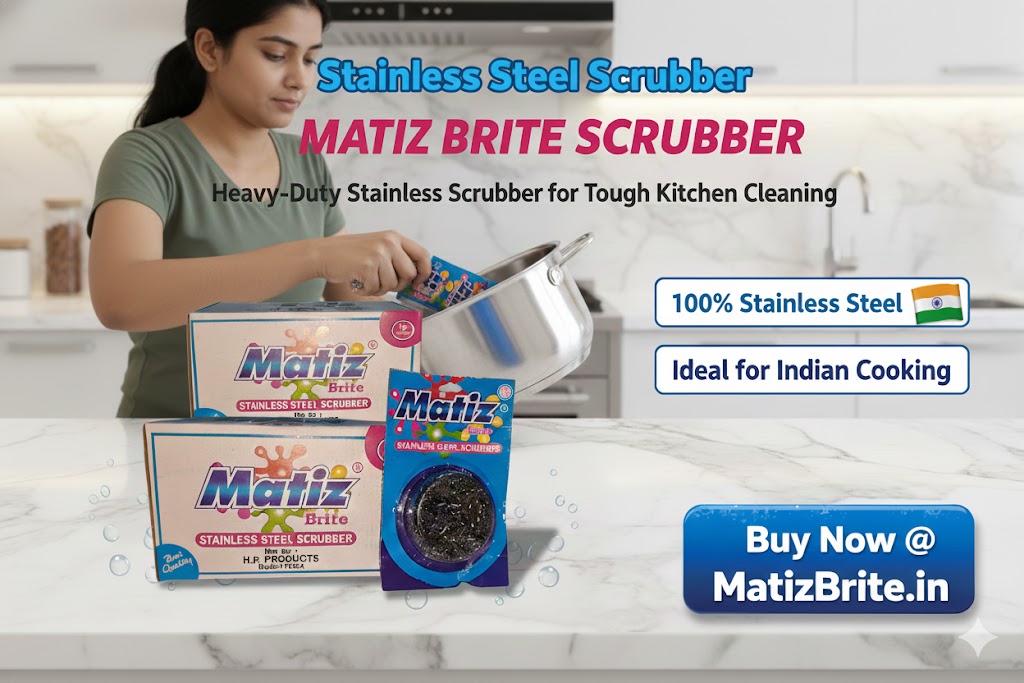 Stainless Steel Scrubber | Matiz Brite Heavy-Duty Kitchen Scrubber for Tough Grease – MatizBrite.in